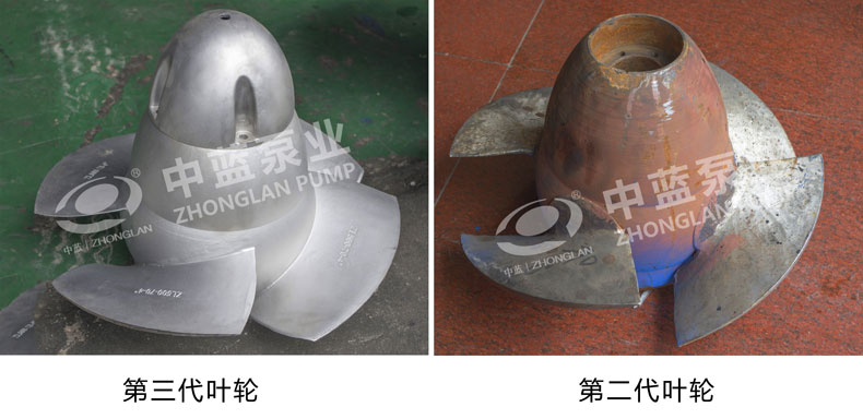 3、第二代叶轮轮毂为铸铁,且叶片与叶轮是活动角度,容易松动‘长时间在水中高速旋转会导致轮毂优先腐蚀完毕。